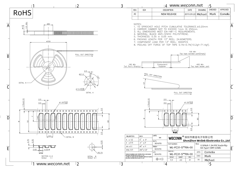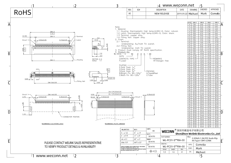 Specifications: 0.5Pitch H1.5 FPC Back-Flip R/A Type1 SMT CONN