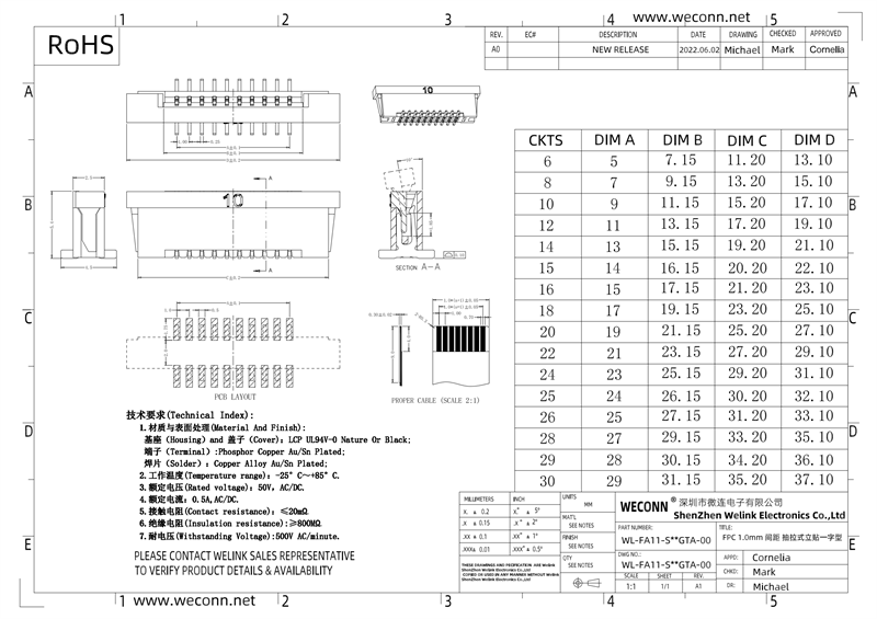 Specifications: 1.0Pitch H5.4 FPC/FFC Connectors(series Locking)