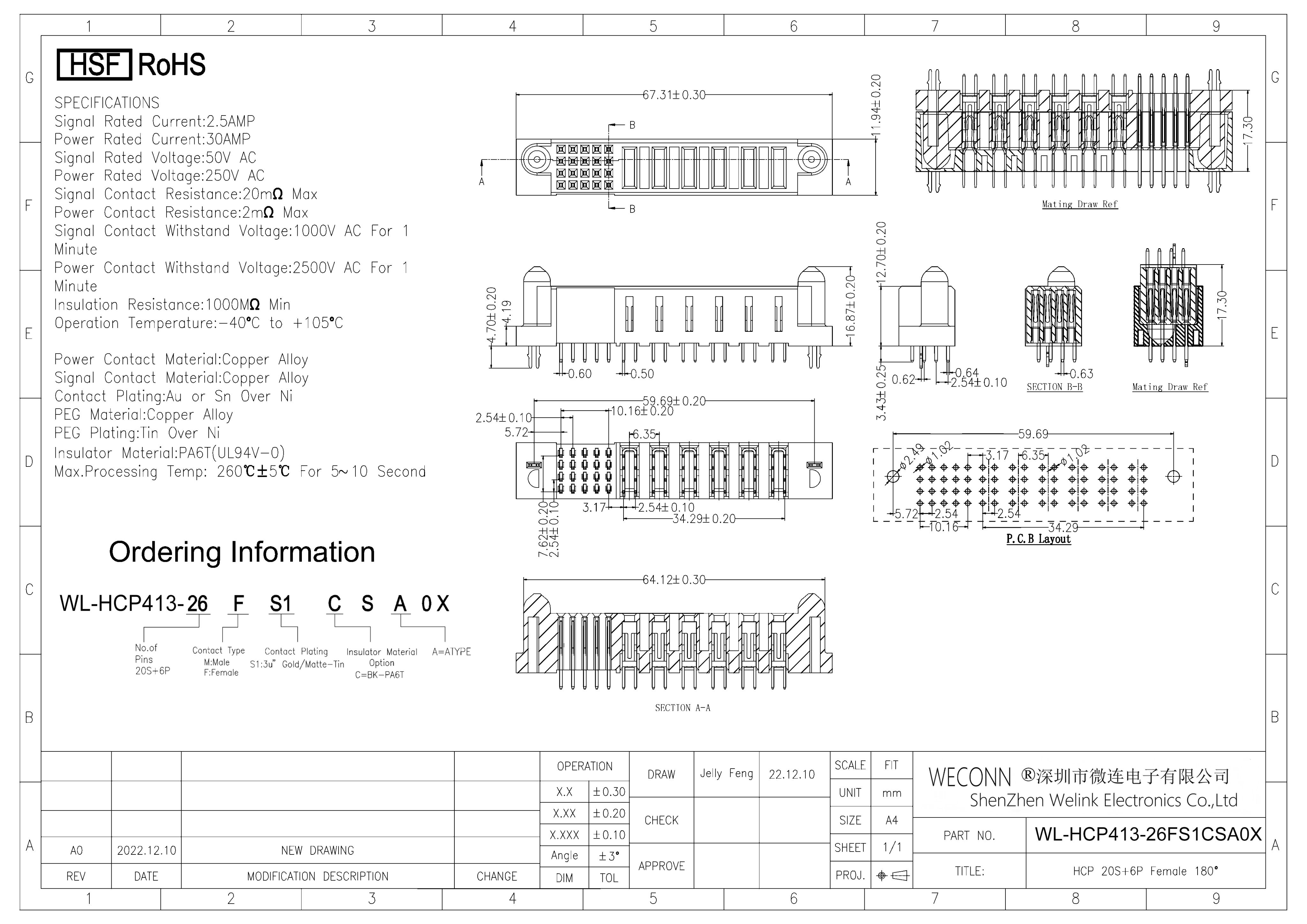 8.Power Contact Withstand Voltage:2500V AC For 1 Minute
