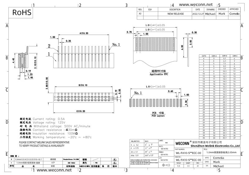 • 产品名称:FPC连接器