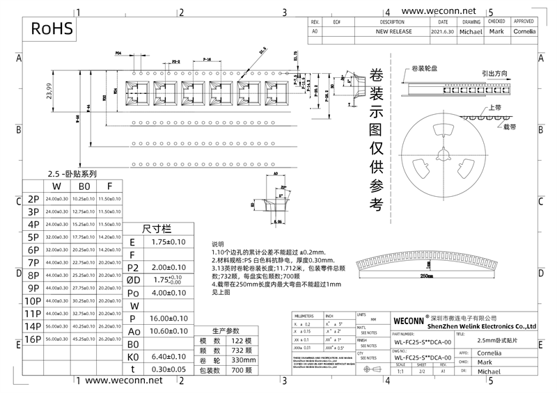 3.此产品生产流程为:上线前检验-->切molding料带-->组装外壳-->电性检验-->平面度检验-->正位度检验-->外观检验-->FQC检验-->入库