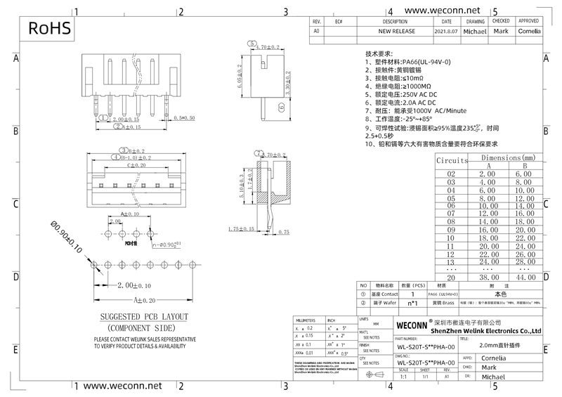 产品料号:WL-S20T-S**PHA-00