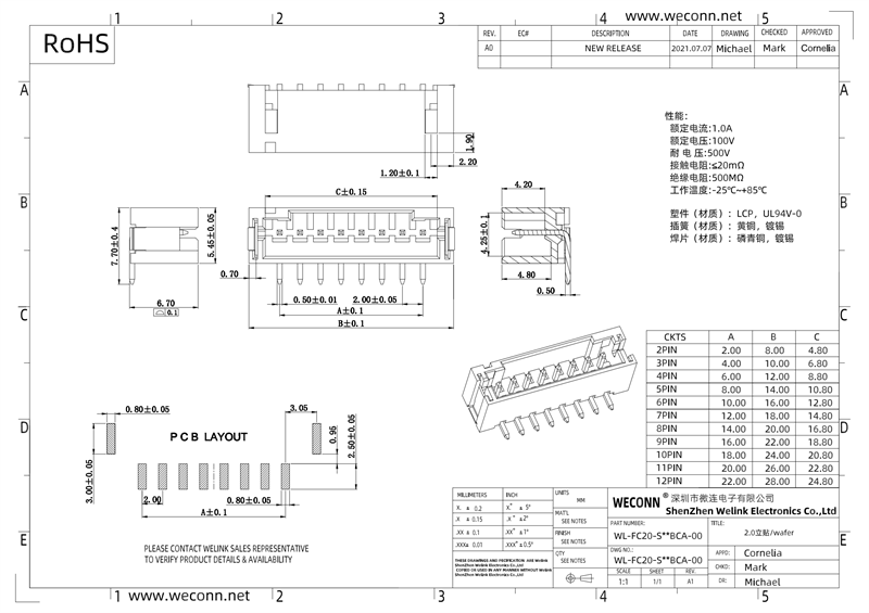 Specifications: 2.0Pitch horizontal patch PH2.0