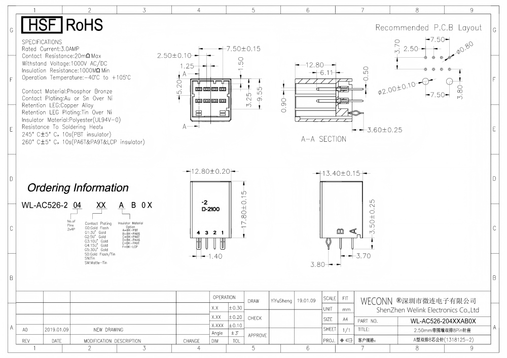 Specifications: 8Pin/2.5mm Pitch/ST
